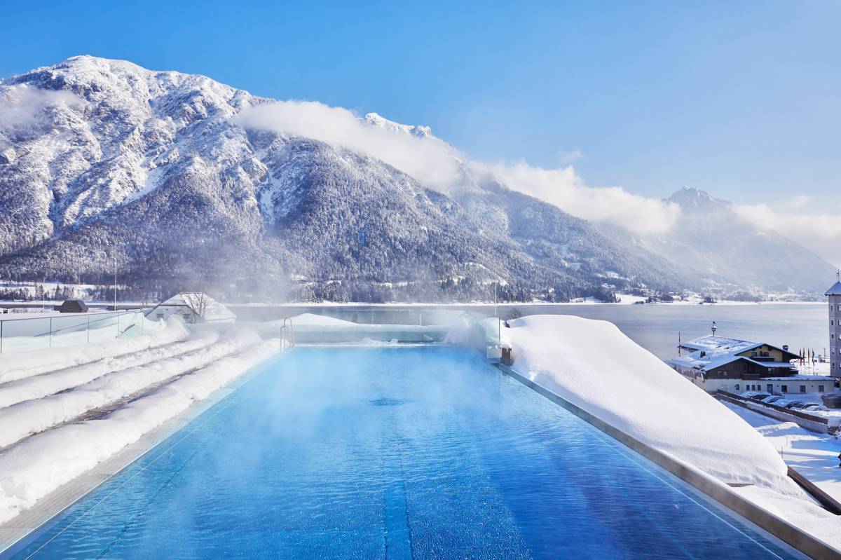 In unseren Wellnessbereich erwartet Sie noch mehr fantastische Wellness in Pertisau: Mit dem neuen Karwendel Sky-Spa verdoppelt sich unser Spabereich nahezu auf 2.800 m². Lassen Sie sich von unserem Wellness-Video inspirieren und überzeugen Sie sich selbst