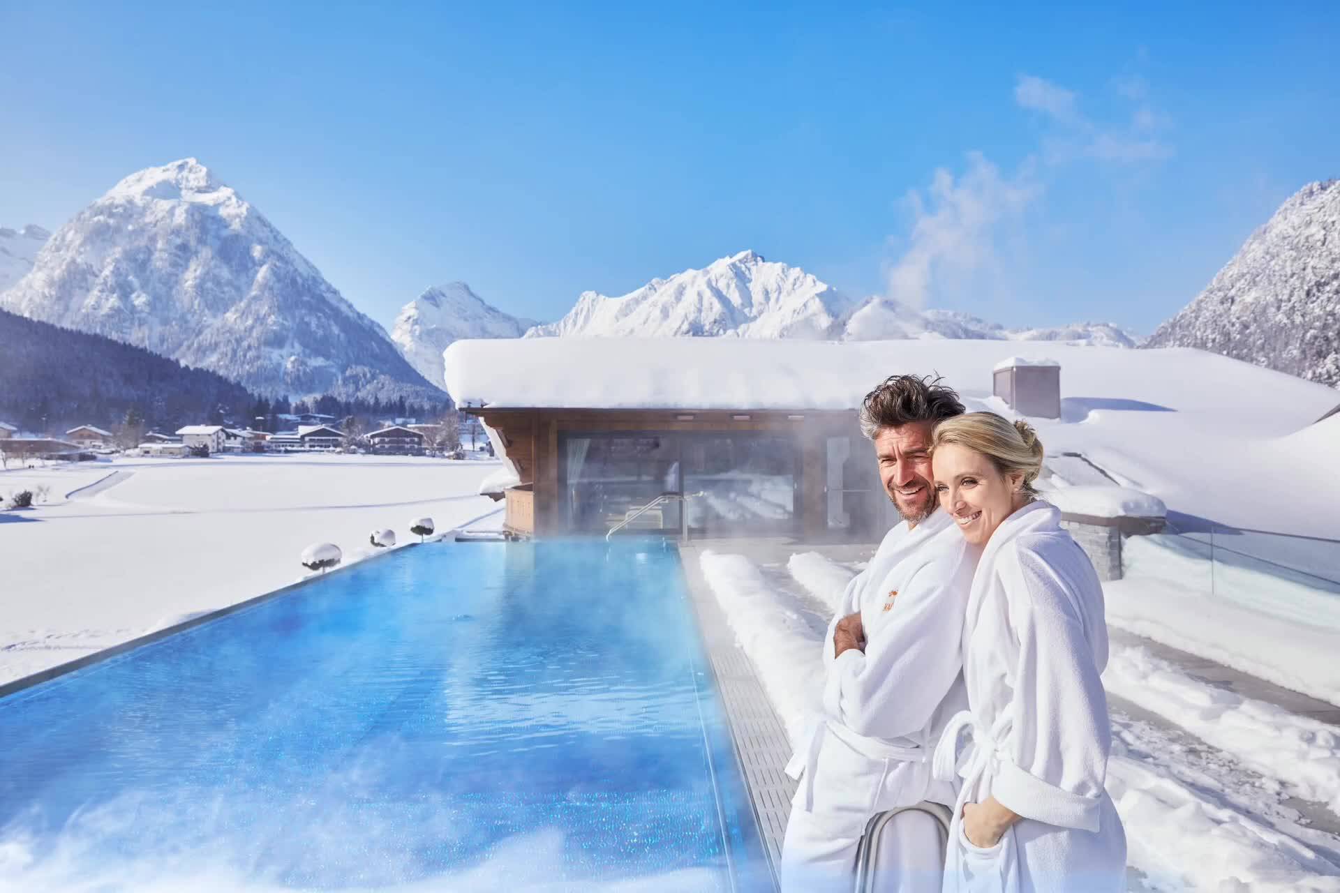 Gleiten Sie vom Hallenbad ins Freie und schwimmen Sie im Außenschwimmbad umrahmt vom herrlichen Karwendelgebirge. Im Winter, wenn aus dem Pool der warme Dampf aufsteigt und die Berglandschaft in Weiß gekleidet ist, liegt ein ganz besonderer Zauber in der Luft.