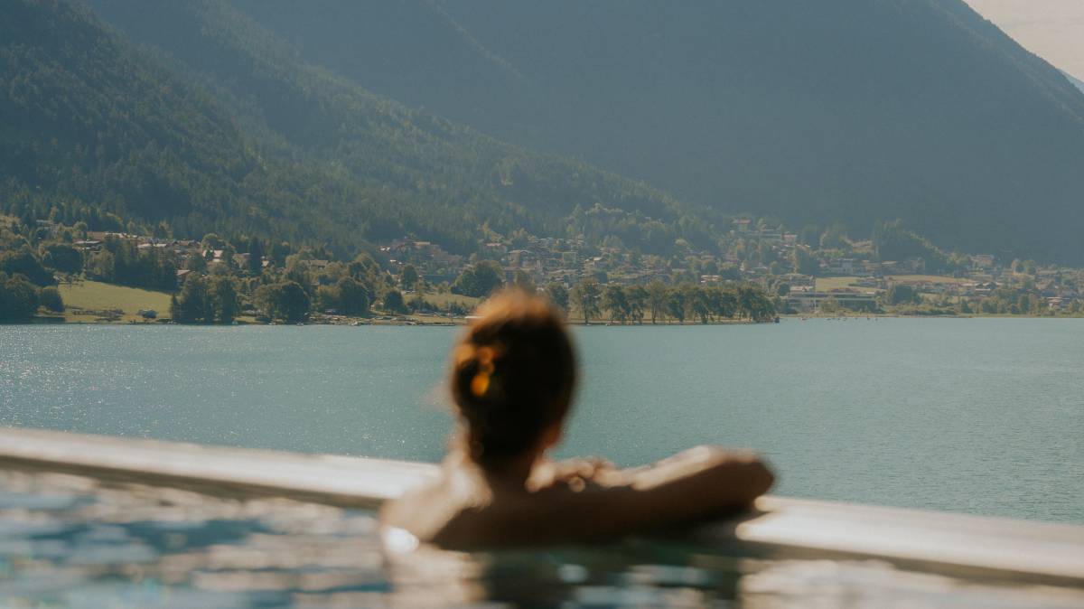 Im Berg-Hot-Whirlpool entspannen Sie im angenehm sprudelnden Wasser mit der faszinierenden Aussicht auf den Achensee. Genießen Sie das malerische Berg-Panorama des Karwendelgebirges und lassen Sie sich treiben.