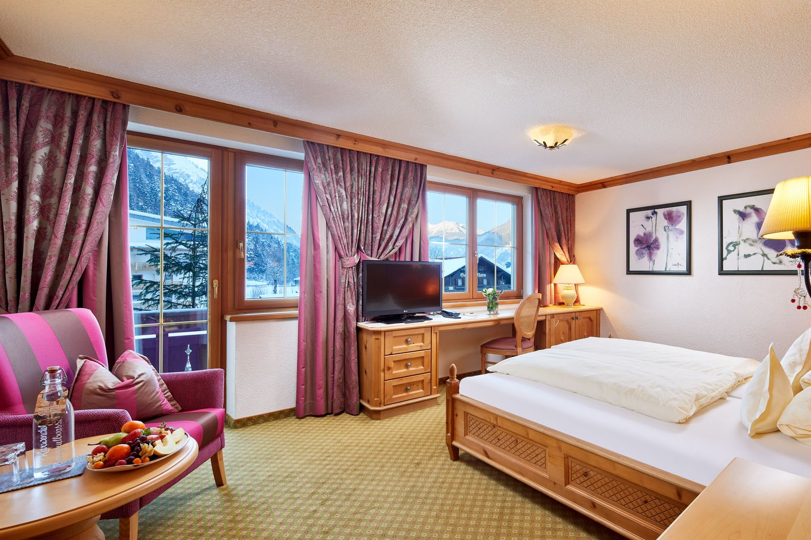 junior suite with rustic tiled stove, radio, telephone, satellite television, refrigerator, make-up corner, shower or bathroom/WC, hairdryer, safe, balcony