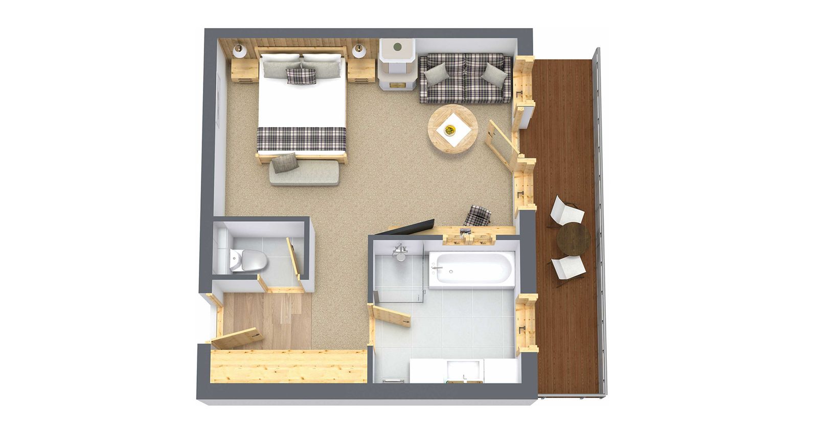 suite with shower and bathroom, separate WC, Rustic tiled stove, radio, telephone, corner seating unit, satellite television, refrigerator, internet, safe and balcony